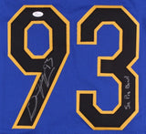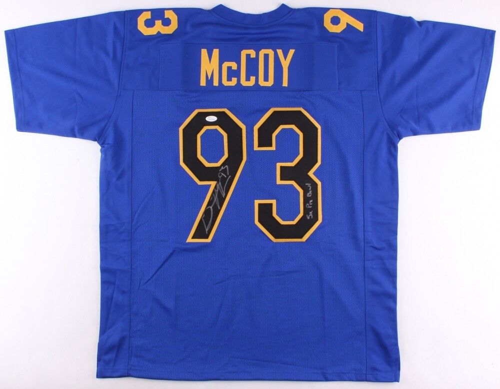 Custom on-field style jersey. Everything sewn on, size XL. Hand-signed in silver paint pen by Gerald Mccoy (Buccaneers). The lot / autograph(s) includes an official James Spence Authentication (JSA) hologram and matching COA for authenticity purposes. The signing of this item was witnessed by JSA.Authentication: JSA COA