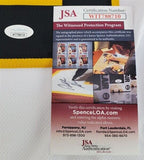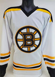 Custom on-ice style jersey. Everything is sewn on, size XL. Hand-signed in silver paint pen by Gerry Cheevers (HOF). The lot / autograph(s) includes an official James Spence Authentication (JSA) hologram and matching COA for authenticity purposes. The signing of this item was witnessed by JSA.Authentication: JSA COA