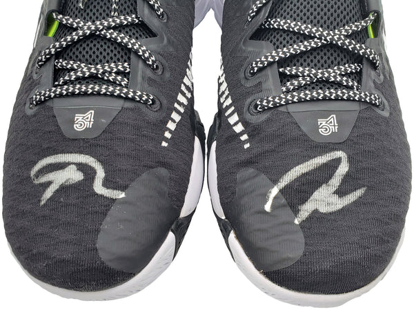 This is a pair of Black Nike Immortality Shoes that has been hand signed by Giannis Antetokounmpo. A This pair of shoes also comes with the original shoe box. This item has been certified authentic by Beckett Authentication (BAS) and comes with their tamper-proof QR Code sticker that can be verified on the Beckett-authentication.com. NOTE: This is a stock item and we have multiple quantities of this item. Giannis' signature on these shoes may vary from the original picture on this listing. We have provided a couple sample photos from other pairs of shoes of this style. After purchasing this item, please contact us and we can send you pictures of the signatures that we still have stock of.