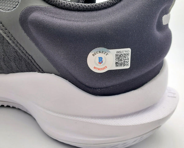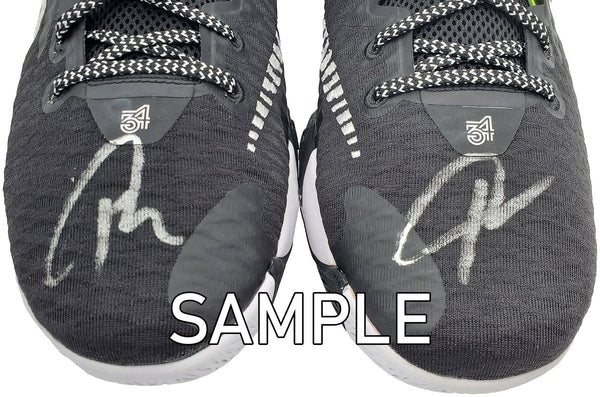 This is a pair of Black Nike Immortality Shoes that has been hand signed by Giannis Antetokounmpo. A This pair of shoes also comes with the original shoe box. This item has been certified authentic by Beckett Authentication (BAS) and comes with their tamper-proof QR Code sticker that can be verified on the Beckett-authentication.com. NOTE: This is a stock item and we have multiple quantities of this item. Giannis' signature on these shoes may vary from the original picture on this listing. We have provided a couple sample photos from other pairs of shoes of this style. After purchasing this item, please contact us and we can send you pictures of the signatures that we still have stock of.