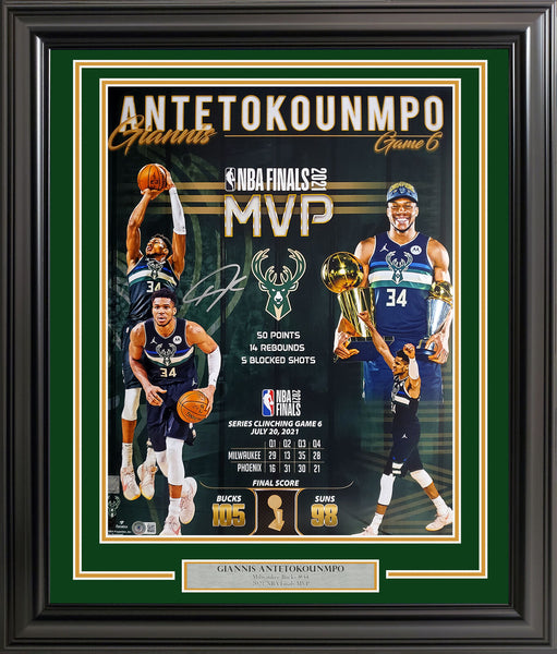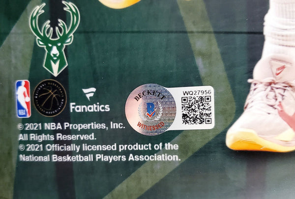 This is a Framed 16x20 Photo, approximately 24x28 with the frame, that has been hand signed by Giannis Antetokounmpo. This item has been certified authentic by Beckett Authentication (BAS) and comes with their tamper-proof QR Code sticker that can be verified on the Beckett-authentication.com.