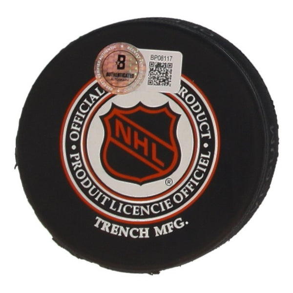 Buffalo Sabres logo hockey puck has been hand-signed by Gilbert Perreault (HOF). Please refer to photos for condition of the puck.The autograph includes an official Beckett Authentication Services serially numbered hologram and QR Code card for authenticity purposes. The signing of this item was witnessed by Beckett.Authentication: Beckett Hologram with QR Code card