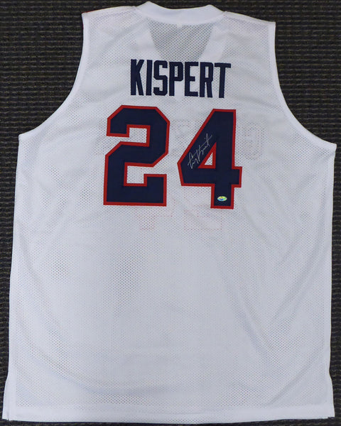 This is a White Jersey that has been hand signed by Corey Kispert. This is a custom jersey with no name brand. The approximate size is XL. It has nice sewn in name and numbers. This item was signed in the presence of a Mill Creek Sports representative and comes with their serial numbered hologram and matching certificate of authenticity.