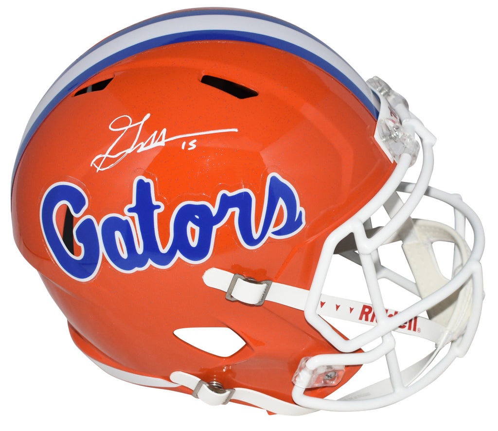 Graham Mertz, star quarterback for the Gators, has hand signed this Florida Riddell Speed full-size replica helmet at a private signing. This item is authenticated by Beckett Authentication Services and was signed in the presence of one of their representatives. Their tamper-evident hologram featuring a QR code and serial number is on the item. The authenticity can be verified online by entering the serial number or scanning the QR code.Item pictured may not be the exact item you will receive. It will be similar quality, and we guarantee your satisfaction.