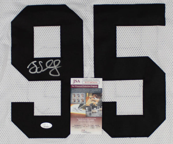 This autographed custom on-field style adult XL jersey has been personally hand-signed by Greg Lloyd of the Pittsburgh Steelers.This autograph is certified by James Spence Authentication's (JSA) Witnessed Protection Program. That means that a JSA representative was present when this item was signed. It comes with the numbered hologram and matching Certificate of Authenticity.Custom on-field style jerseys are a more affordable option for autograph seekers. These jerseys do not have any brand name or tags and are made in the Philippines. They feature stitched on names and numbers and are made to look very similar to the on-field jerseys that the players wear. These custom jerseys are very commonly used in the memorabilia industry.