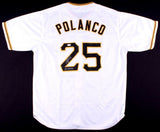Custom on-field style jersey. Everything is sewn on, size XL. Hand-signed in silver paint pen by Gregory Polanco. The autograph includes an official James Spence Authentication (JSA) hologram and matching COA for authenticity purposes. The signing of this item was witnessed by JSA.Authentication: JSA COA