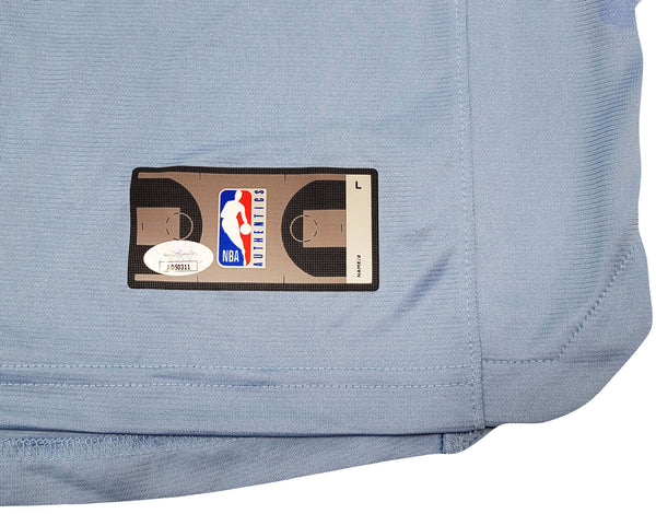 This is a Light Blue Fanatics Memphis Grizzlies Jersey that has been hand signed by Ja Morant. This jersey is Size L. This item was inscribed "ROY 20." This item has been certified authentic by JSA and comes with their tamper-proof sticker and matching certificate of authenticity.