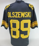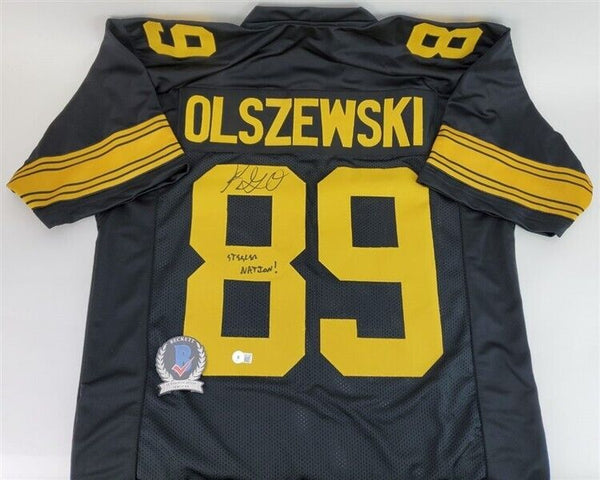 This autographed jersey has been personally hand-signed by Gunner Olszewski ("Steeler Nation!" inscription) of the Pittsburgh Steelers. This autograph is certified by Beckett Authentication Services (BAS) Witness Certification. That means that a Beckett representative was present when this item was signed. It comes with the numbered authentication hologram with a QR code that verifies the authentication on the Beckett website.Custom on-field style jerseys are a more affordable option for autograph seekers. These jerseys do not have any brand name or tags and are made in the Philippines. They feature stitched on names and numbers and are made to look very similar to the on-field jerseys that the players wear. These custom jerseys are very commonly used in the memorabilia industry.