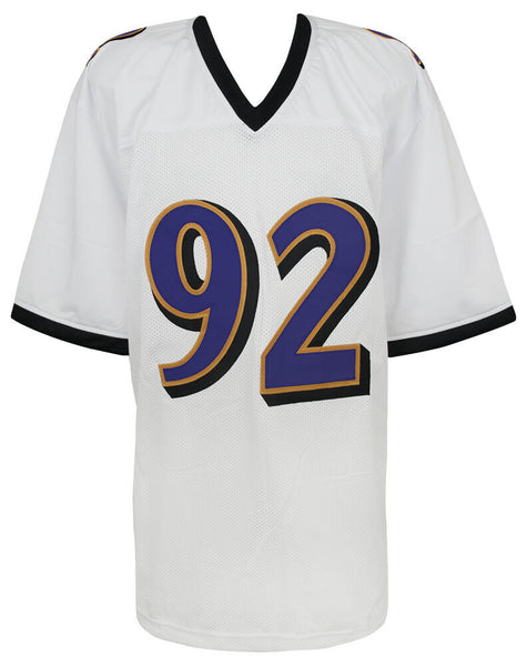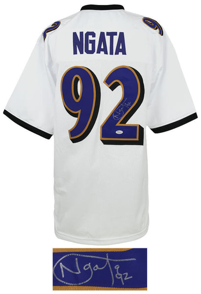 Haloti Ngata signed white custom football jersey. Item comes with a JSA (James Spence Authentication) tamper evident numbered sticker and matching Certificate of Authenticity which can be verified online.