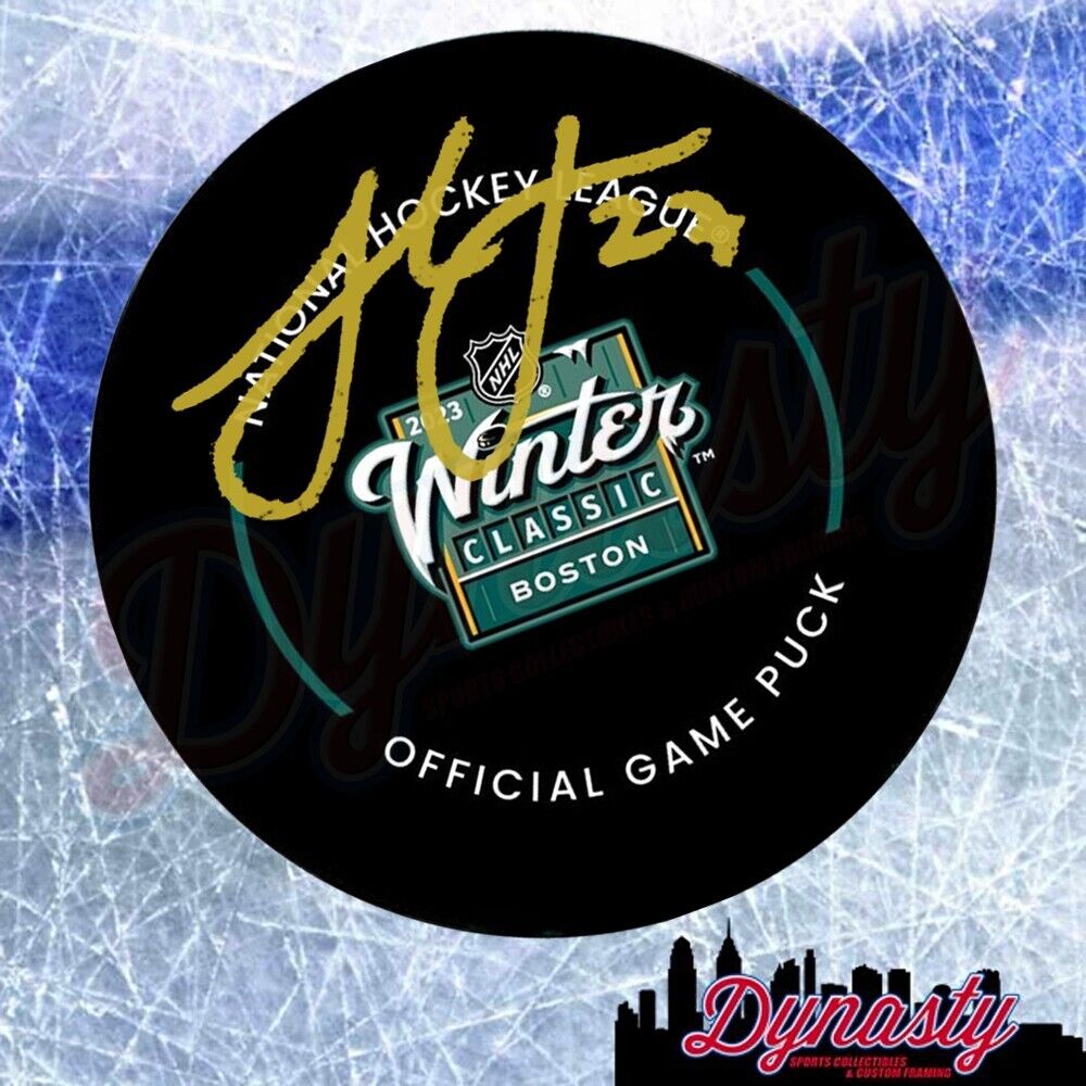 Hampus Lindholm Autographed 2023 Winter Classic Game Model Puck Official NHL logo puck with signature from Bruins star Hampus Lindholm - authenticated by Dynasty Sports The 2023 Winter Classic was one for the ages having been played inside one of baseball's oldest stadiums, Fenway Park. This officially licensed 2023 Winter Classic Souvenir puck has been hand signed by Bruins defenseman, Hampus Lindholm. Lindholm would help lead his Boston Bruins to victory during the historical match-up having defeated rival, Pittsburgh Penguins at the Winter Classic. Hampus Lindholm hand signed this puck during his public appearance on 02/10/23 at our Northshore Mall location in Peabody, MA. Each item will include a tamper-proof serially numbered Dynasty hologram that has been registered in our database.Hand-Signed by Boston Bruins star Hampus LindholmSignature is in sharp yellow paint pen on the puckOfficially licensed NHL puckAuthenticated with Dynasty Sports serially numbered hologram - guaranteed to pass JSA or PSA/DNA authentication