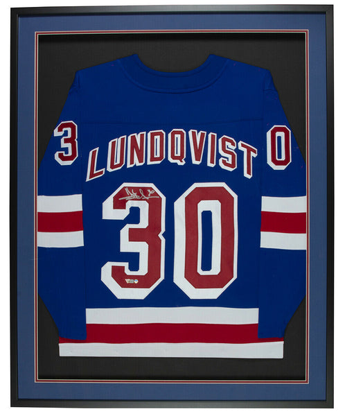 Featured is a Henrik Lundqvist signed framed New York Rangers Fanatics hockey jersey. This jersey was hand signed by Henrik Lundqvist and authenticated by Fanatics authentication services. Included with the jersey is a Fanatics hologram and certificate of authentication. The jersey is professionally framed and matted, measures approximately 32x36. Brand new professional framing and ready to display! This item would make a great addition to any sports memorabilia collection!. SPECIFICATIONS Autographed By: Henrik Lundqvist Team: New York Rangers Sport: Hockey-NHL Authentication: Professional Sports Authenticator (PSA)
