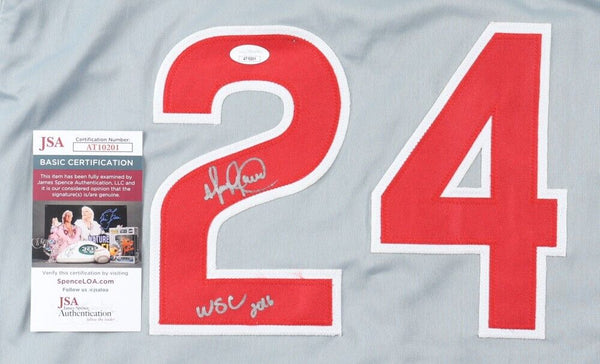 Custom on-field style jersey with everything sewn on, size XL. Has been hand-signed and inscribed by Henry BlancoThe autograph includes an official James Spence Authentication (JSA) hologram and matching COA for authenticity purposes.Authentication: JSA COA