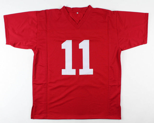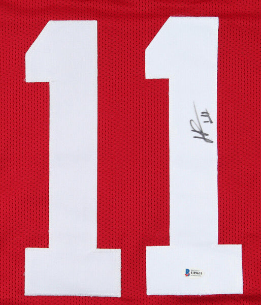 Custom on-field style jersey. Everything is sewn on, size XL. Has been hand-signed by Henry Ruggs.The lot / autograph(s) includes an official Beckett Authentication Services serially-numbered hologram and matching CVOA for authenticity purposes. Authentication: Beckett COA