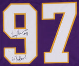 Custom on-field style jersey. Everything sewn on, size XL. Hand-signed and inscribed in black felt-tip pen by Henry Thomas. The lot / autograph(s) includes an official James Spence Authentication (JSA) hologram and matching COA for authenticity purposes. The signing of this item was witnessed by JSA.Authentication: JSA COA