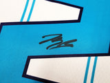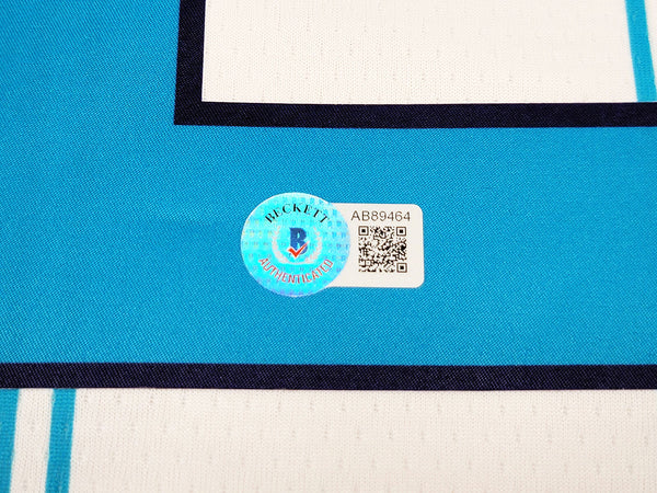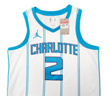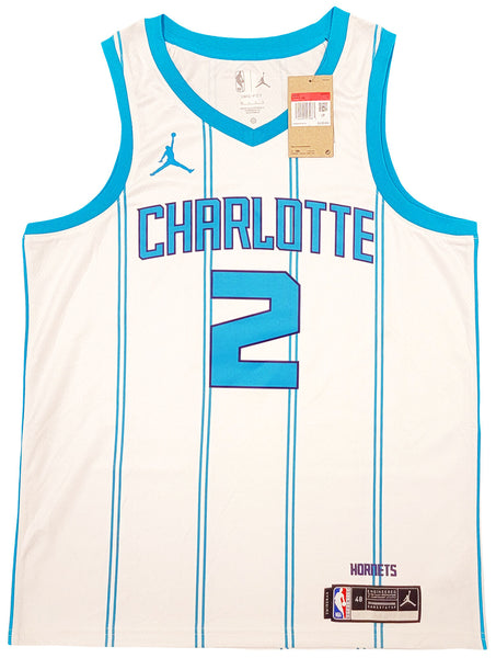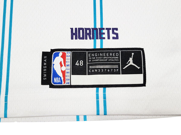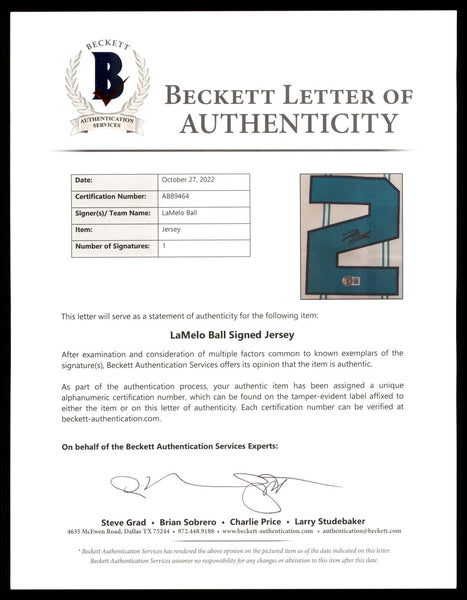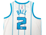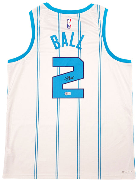 This is a White Nike Charlotte Hornets Swingman Jersey that has been hand signed by LaMelo Ball. This jersey is Size L. This item has been certified authentic by Beckett Authentication (BAS) and comes with their tamper-proof QR Code sticker that can be verified on the Beckett-authentication.com.