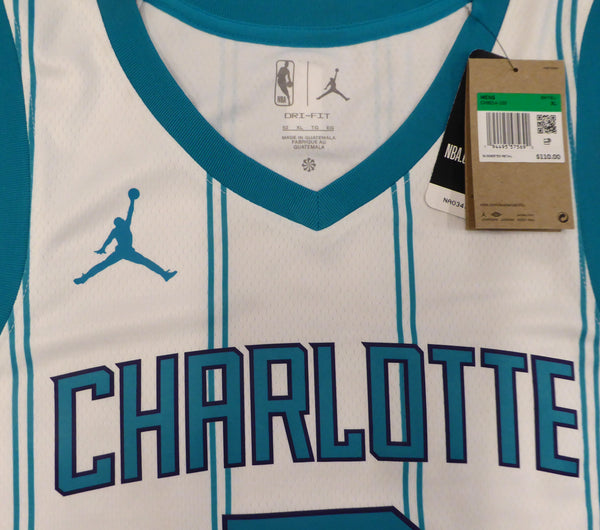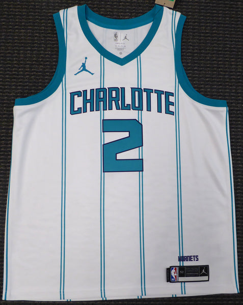 This is a White Nike Swingman Charlotte Hornets Jersey that has been hand signed by Lonzo Ball. This jersey is Size 52. This item has been certified authentic by Beckett Authentication (BAS) and comes with their tamper-proof QR Code sticker that can be verified on the Beckett-authentication.com.