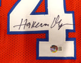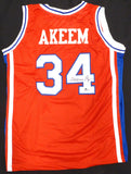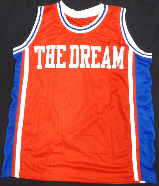 This is a Red Jersey that has been hand signed by Hakeem Olajuwon. This is a custom jersey with no name brand. The approximate size is XL. It has nice sewn in name and numbers. This item has been certified authentic by Beckett Authentication (BAS) and comes with their tamper-proof QR Code sticker that can be verified on the Beckett-authentication.com.