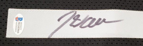 This is a Black Custom Jersey that has been hand signed by John Wall. This is a custom jersey with no name brand. The approximate size is XL. It has nice sewn in name and numbers. This item has been certified authentic by Beckett (BAS) and comes with their tamper-proof sticker and matching certificate of authenticity.