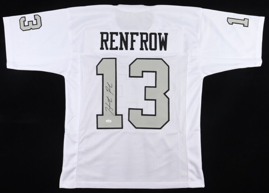 Custom on-field style jersey. Everything is sewn on, size XL. Hand-signed by Hunter Renfrow.The lot / autograph(s) includes an official James Spence Authentication (JSA) hologram and matching COA for authenticity purposes. The signing of this item was witnessed by JSA.Authentication: JSA COA