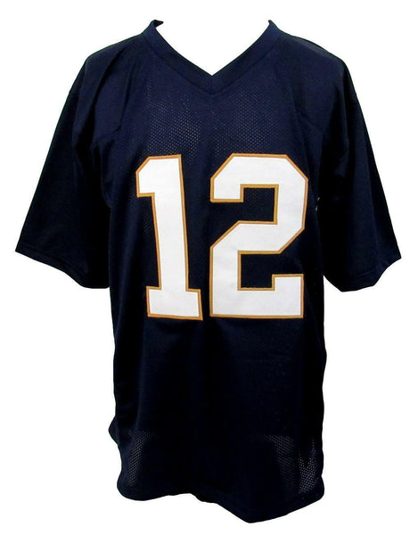 Ian book signed/inscribed "play like a champion today!" notre dame blue custom football jersey size xl. this jersey is authenticated by bas/beckett and includes their tamper-proof sticker and certificate of authenticity.
