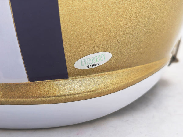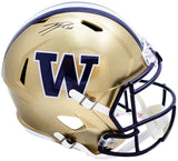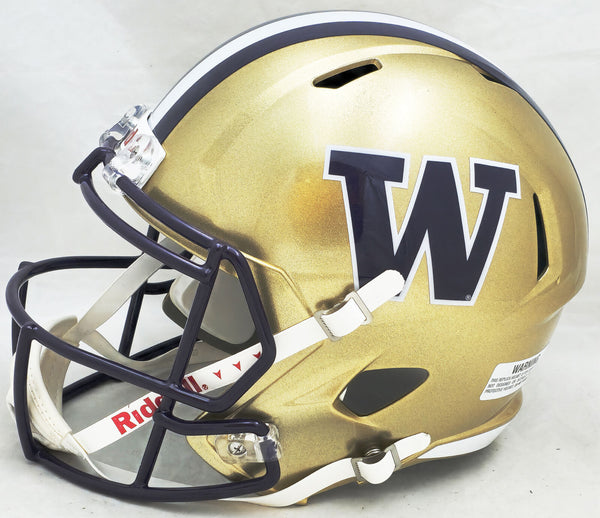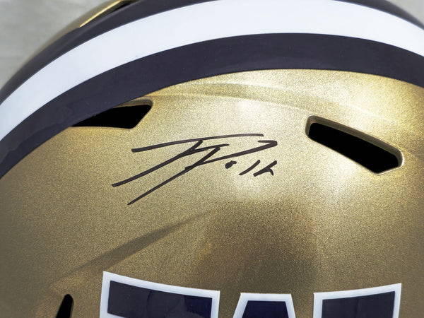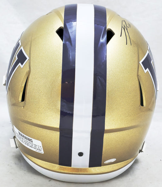 This is a Washington Huskies Gold Full Size Replica Speed Helmet that has been hand signed by Ja'Lynn Polk. This item was signed in the presence of a Mill Creek Sports representative and comes with their serial numbered hologram and matching certificate of authenticity.