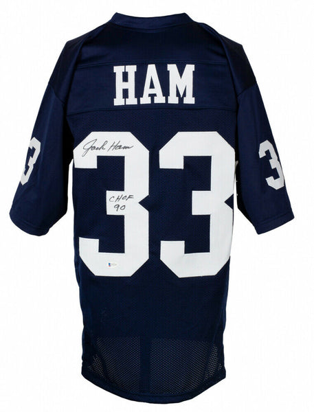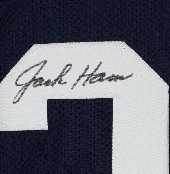 Custom on-field style jersey. Everything is sewn on, size XL. Hand-signed and inscribed in black felt-tip pen by Jack Ham (HOF). The lot / autograph(s) includes an official James Spence Authentication (JSA) hologram and matching COA for authenticity purposes.Authentication: JSA COA