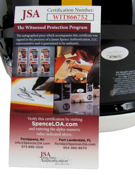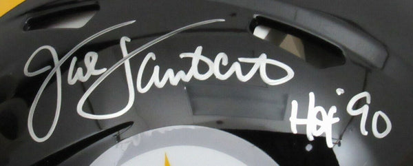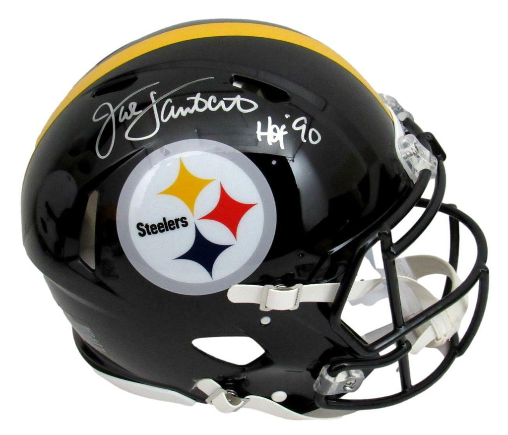 Jack lambert hof signed/inscribed "hof 90" pittsburgh steelers black full size speed authentic helmet. this helmet is authenticated by jsa and includes their tamper-proof sticker and certificate of authenticity.