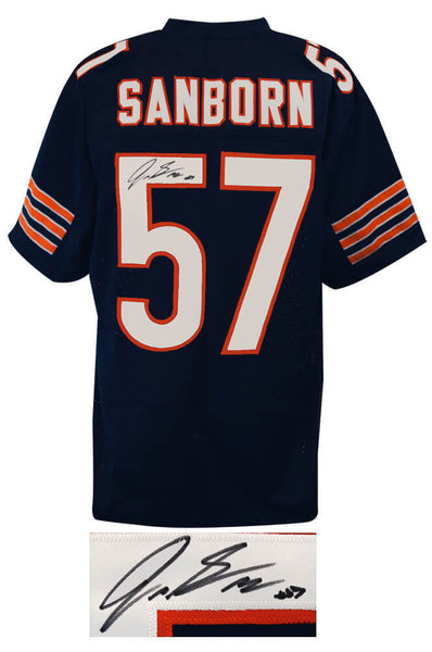 Jack Sanborn signed navy custom football jersey. Item comes with a Schwartz Sports Memorabilia tamper-proof numbered hologram and Certificate of Authenticity which can be verified online.