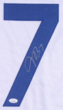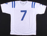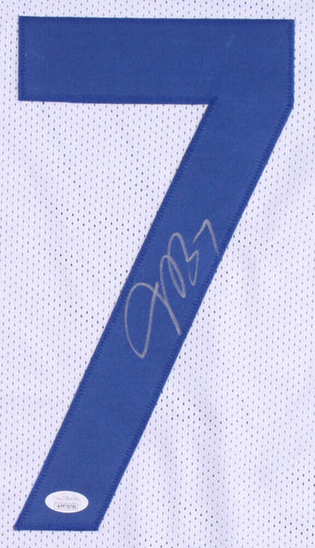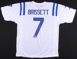 Custom on-field style jersey. Everything is sewn on, size XL. Hand-signed in black paint pen by Jacoby Brissett. The lot / autograph(s) includes an official James Spence Authentication (JSA) hologram and matching COA for authenticity purposes. The signing of this item was witnessed by JSA.Authentication: JSA COA