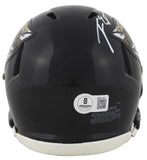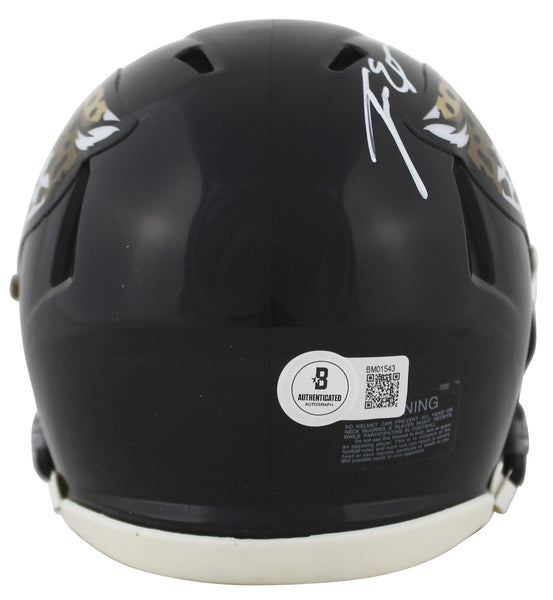 This Autographed Speed Mini Helmet has been Personally Signed by Travis Etienne Jr. of the Jacksonville Jaguars. This item is 100% Authentic to include a hologram by Beckett Authentication Services. This item will come with an affixed Beckett Authentication Services (BAS) authentication sticker, which includes a scannable QR code to verify authenticity. Please note that Beckett no longer provides serial-numbered COA cards, and the attached BAS sticker will serve as the complete authentication for this item. We conducted an autograph signing with Travis Etienne Jr. where multiples of the same item were signed. While the photographs are representative of this item, the size, placement and strength of the signature may vary. Each item is hand signed, therefore, each autograph is unique. This item can be verified through BAS.