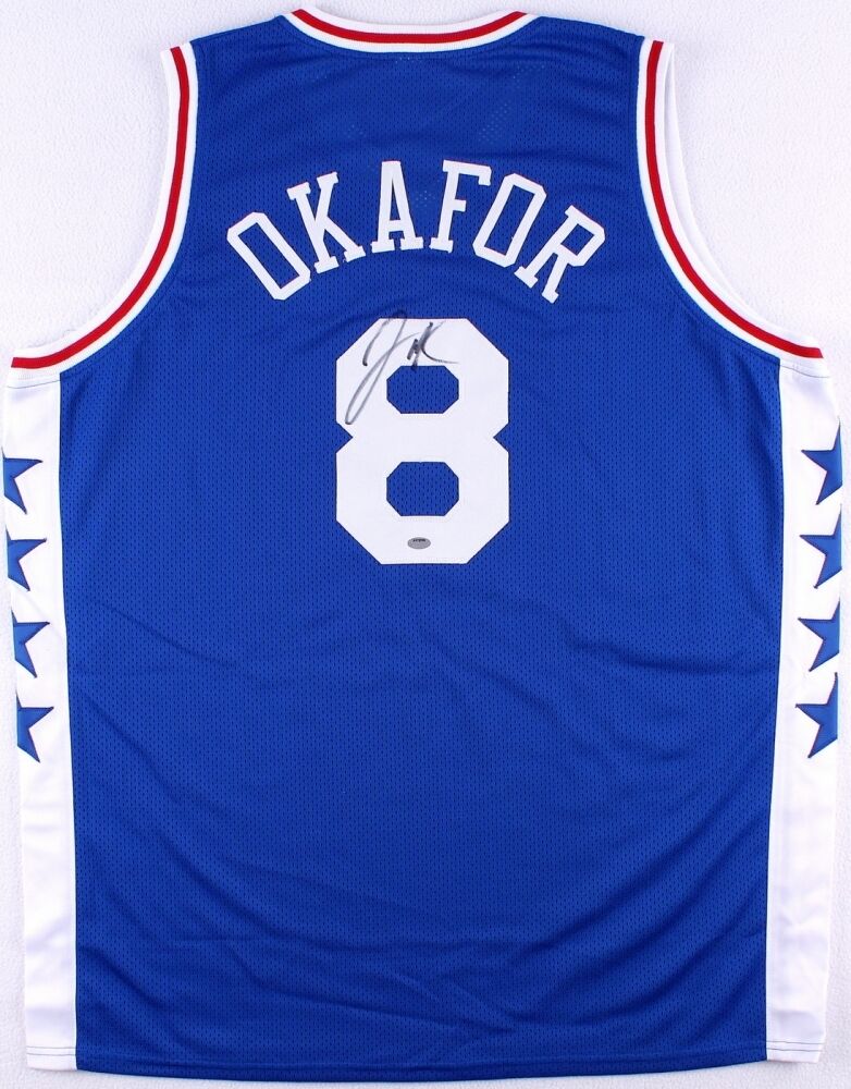 Custom on-court style jersey. Everything sewn on, size XL. Hand signed in black felt-tip pen by Jahlil Okafor (76ers). The autograph includes an official Schwartz Sports Hologram and matching COA for authenticity purposes.Authentication: Schwartz Sports COA