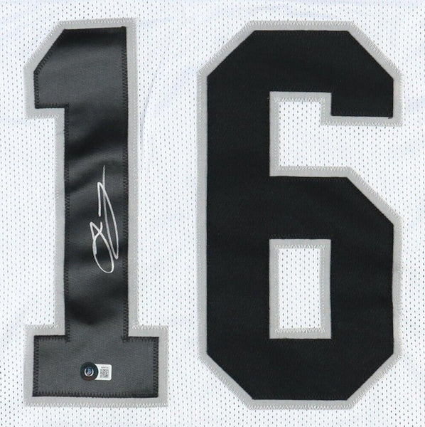 Custom on-field style jersey. Everything is sewn on, size XL. Hand-signed by Jakobi Meyers.The lot / autograph(s) includes an official Beckett Authentication Services serially numbered hologram for authenticity purposes. The signing of this item was witnessed by Beckett.Authentication: Beckett Hologram