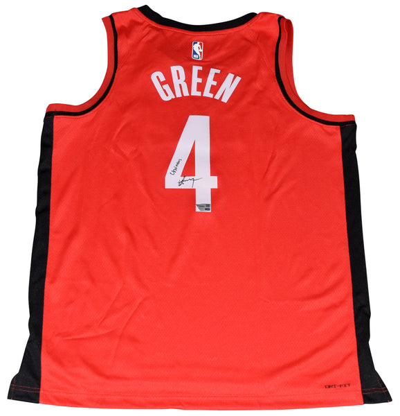 Jalen Green, star shooting guard for the Houston Rockets, has hand signed this Nike Swingman jersey at a private signing. He included the inscription "Unicorn" with his signature. Jersey is new with tags attached and all letters/numbers are screen print. This item comes with a serial-numbered hologram from Fanatics Authentic, one of the leaders in the industry. The authenticity can be verified online by entering the serial-number. A Fanatics Authentic information card is also included.Item pictured may not be the exact item you will receive. It will be similar quality, and we guarantee your satisfaction.