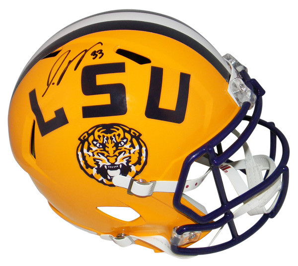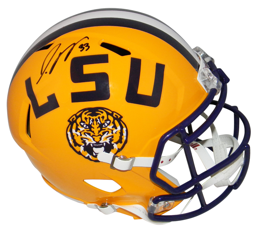Jamal Adams, former All-American safety for the LSU Tigers, has hand signed this LSU Riddell Speed full-size replica helmet at a private signing. This item comes with a certificate of authenticity (COA) from Beckett Authentication Services and was signed in the presence of one of their representatives. You will receive a serial-numbered COA along with a matching serial-numbered sticker on the helmet. The authenticity can be verified online by entering the serial number.Item pictured may not be the exact item you will receive. It will be similar quality, and we guarantee your satisfaction.