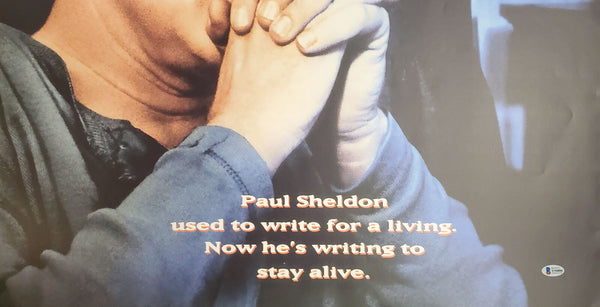This is a 27x39 Misery Movie Poster that has been hand signed by James Caan. It has been certified authentic by Beckett Authentication (BAS) and comes with their sticker and matching certificate of authenticity.A Please note, this poster is fragile and there are minor dings surrounding the item from handling it while it was signed.