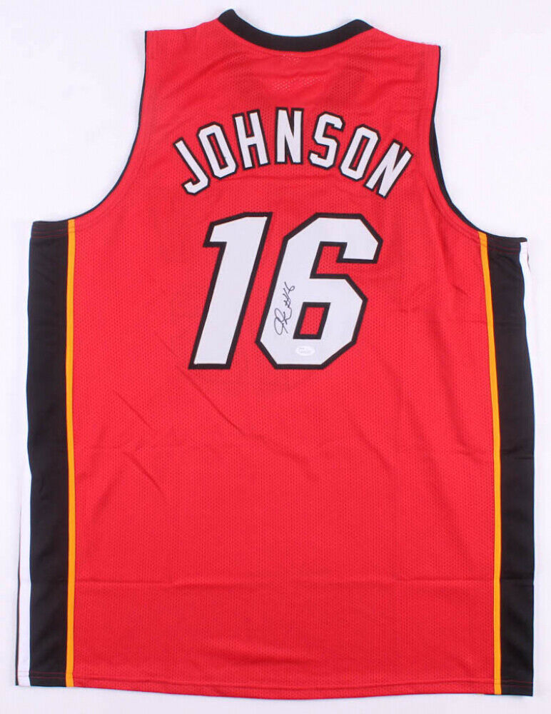 Custom on-court style jersey. Everything is sewn on, size XL. Hand-signed in black felt-tip pen by James Johnson. The lot / autograph(s) includes an official James Spence Authentication (JSA) hologram and matching COA for authenticity purposes. The signing of this item was witnessed by JSA.Authentication: JSA COA
