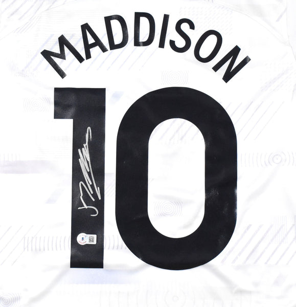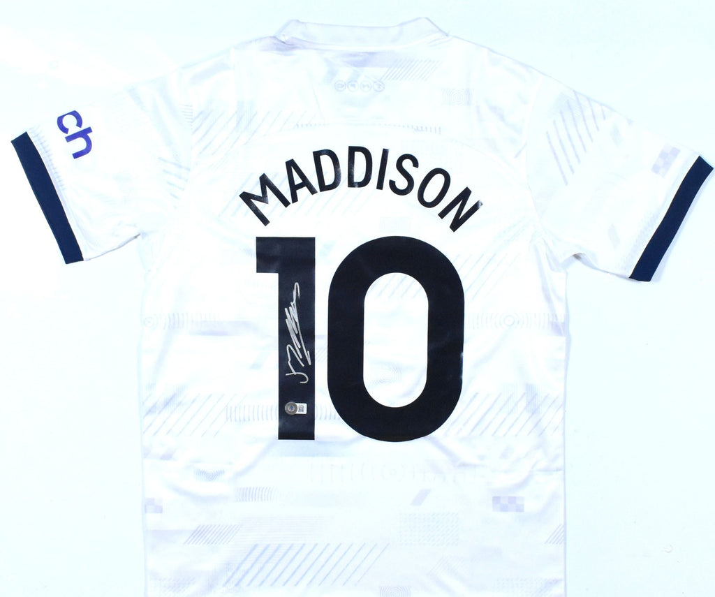 This is a hand autograph Nike Jersey of James Maddison of Tottenham Hotspur. This item has a Beckett Authentication, which comes with a Beckett numbered hologram and a QR Code for verification. You can view this item on the Beckett Authentication website. It was signed either at a public autograph appearance or a private signing. This is a stock photo of the item. Although you may not receive this exact item, the item you receive is virtually identical and brand new in great shape. Jersey size is M. This is a hand autograph Nike Jersey of James Maddison of Tottenham Hotspur. This item has a Beckett Authentication, which comes with a Beckett numbered hologram and a QR Code for verification. You can view this item on the Beckett Authentication website. It was signed either at a public autograph appearance or a private signing. This is a stock photo of the item. Although you may not receive this exact item, the item you receive is virtually identical and brand new in great shape. Jersey size is L.