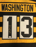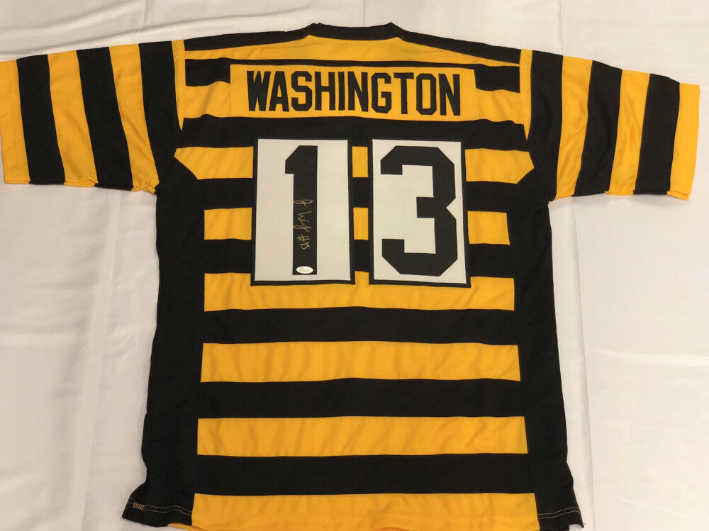 Custom on-field style throwback jersey. Everything is sewn on, size XL. Hand-signed in silver paint pen by James Washington. The lot / autograph(s) includes an official James Spence Authentication (JSA) hologram for authenticity purposes. The signing of this item was witnessed by JSA.Authentication: JSA Hologram
