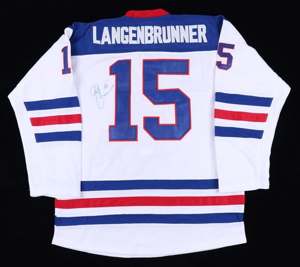 On-ice style jersey. Everything sewn on, size 50. Hand-signed by Jamie Langenbrunner.The lot / autograph(s) includes an official James Spence Authentication (JSA) hologram and matching COA for authenticity purposes.Authentication: JSA COA