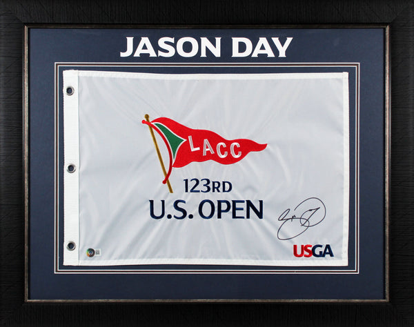 This Autographed & Framed 2023 Los Angeles Country Club US Open Pin Flag has been Personally Signed by Jason Day. This item is 100% Authentic to include a hologram by Beckett Authentication Services. This item will come with an affixed Beckett Authentication Services (BAS) authentication sticker, which includes a scannable QR code to verify authenticity. Please note that Beckett no longer provides serial-numbered COA cards, and the attached BAS sticker will serve as the complete authentication for this item. The authenticity can be verified on Beckett Authentication Services website. This item has been professionally framed to overall dimensions of approximately 22.5 x 28.5 inches.