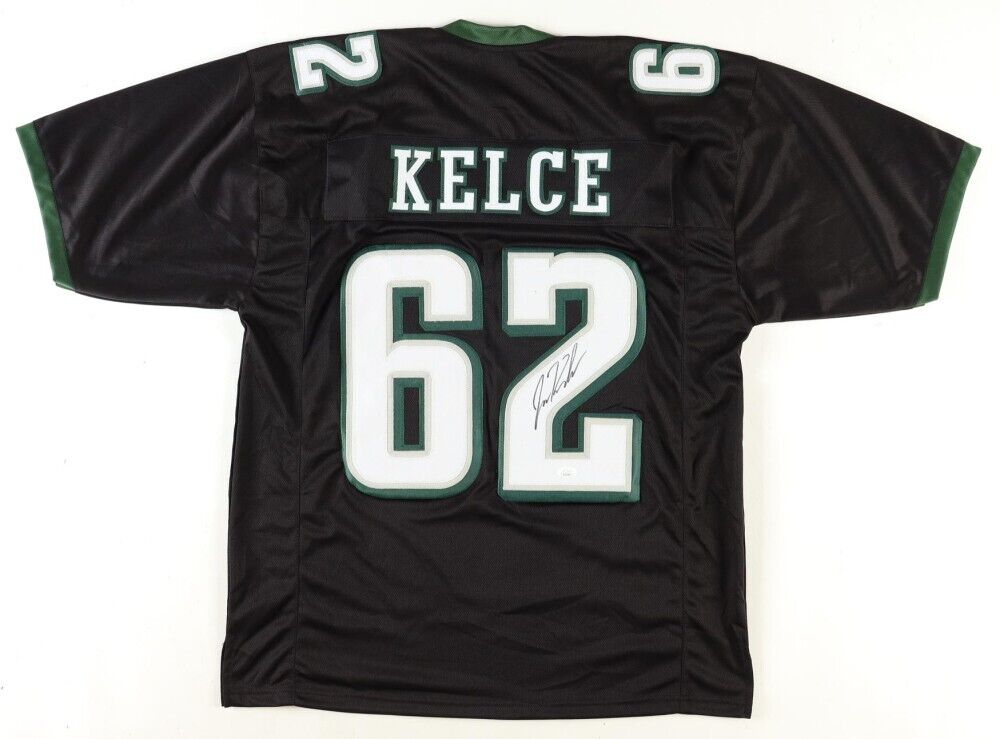 Custom on-field style jersey. Everything sewn on, size XL. Hand-signed by Jason Kelce.The autograph(s) includes an official James Spence Authentication (JSA) hologram and matching COA for authenticity purposes.Authentication: JSA COA
