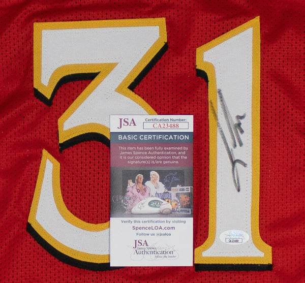 This autographed custom on-court style adult XL jersey has been personally hand-signed by Jason Terry of the Atlanta Hawks.This autograph is certified by James Spence Authentication (JSA). It comes with the numbered hologram and matching Certificate of Authenticity.Custom on-court style jerseys are a more affordable option for autograph seekers. These jerseys do not have any brand name or tags and are made in the Philippines. They feature stitched on names and numbers and are made to look very similar to the on-field jerseys that the players wear. These custom jerseys are very commonly used in the memorabilia industry.