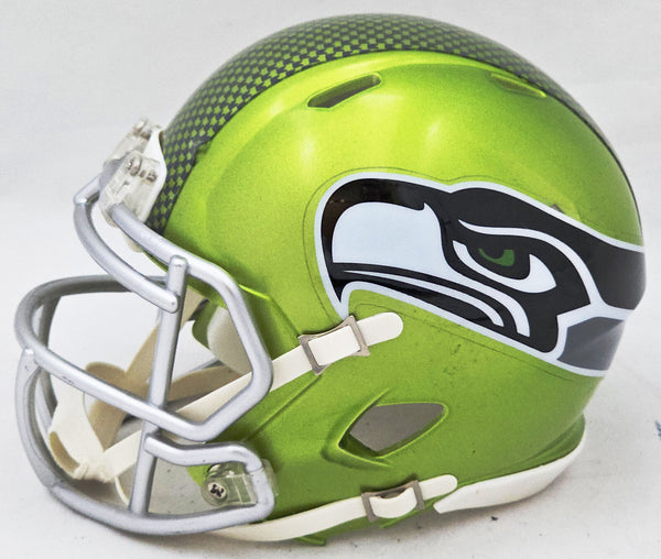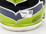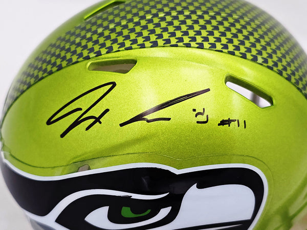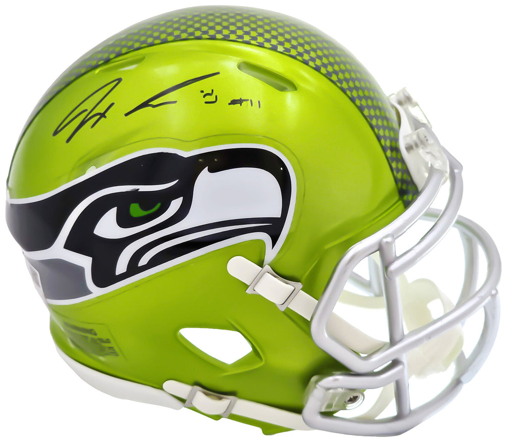 This is a Seattle Seahawks Flash Green Speed Mini Helmet that has been hand signed by Jaxon Smith-Njigba. The Flash helmets are delicate and may have some marks or scratches on them. This item has been certified authentic by Fanatics and comes with their tamper-proof sticker.