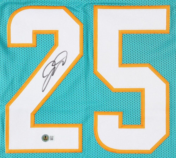 Custom on-field style jersey. Everything is sewn on, size XL. Hand-signed by Jaylen Wright.The autograph includes an official Beckett Authentication Services serially numbered hologram and QR Code Card for authenticity purposes. The signing of this item was witnessed by Beckett.Authentication: Beckett Hologram with QR Code Card