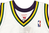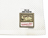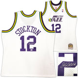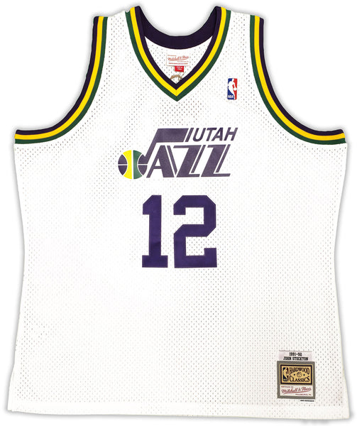 This is a White Authentic Mitchell & Ness Utah Jazz 1991-92 Hardwood Classic Swingman Jersey that has been hand signed by John Stockton. This jersey is Size XXL. This item has been witnessed and certified authentic by Beckett Authentication (BAS) and comes with their tamper-proof witness sticker.