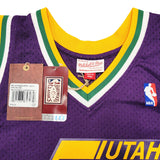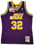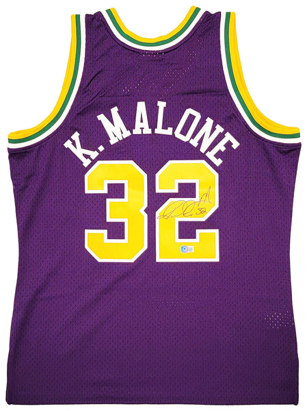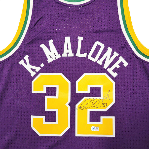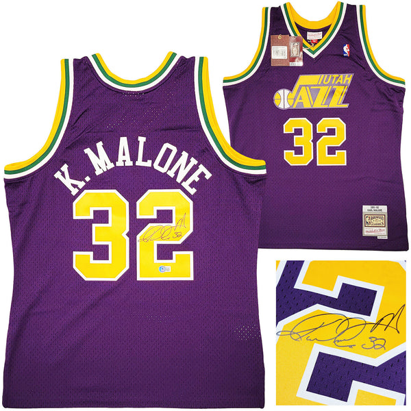 This is a Purple Authentic Mitchell & Ness Hardwood Classics 1991-92 Utah Jazz Jersey that has been hand signed by Karl Malone. This jersey is Size L. This item has been witnessed and certified authentic by Beckett Authentication (BAS) and comes with their tamper-proof witness sticker. Beckett Authentication has recently changed their physical certificate card policy where they no longer match their tamper-proof sticker with a physical certificate. A certificate can be printed on Beckett's website for the matching authentication number.
