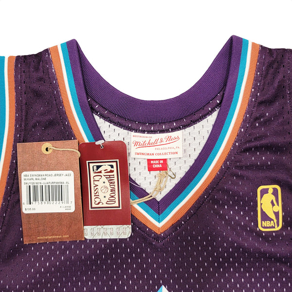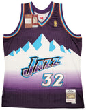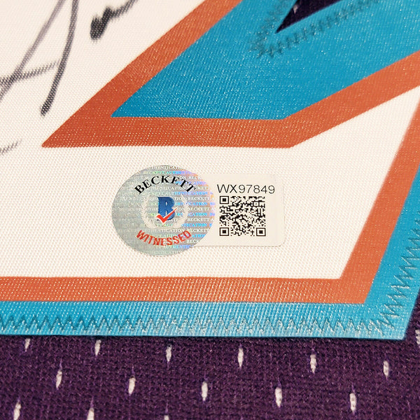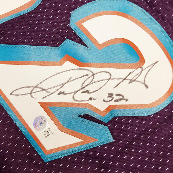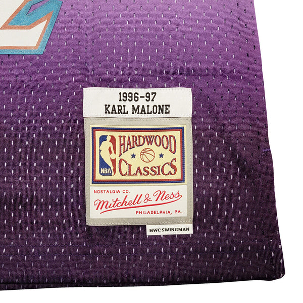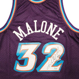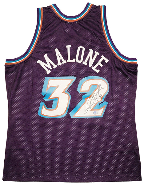 This is a Purple & Teal Authentic Mitchell & Ness Hardwood Classics 1996-97 Utah Jazz Jersey that has been hand signed by Karl Malone. This jersey is Size XL. This item has been witnessed and certified authentic by Beckett Authentication (BAS) and comes with their tamper-proof witness sticker. Beckett Authentication has recently changed their physical certificate card policy where they no longer match their tamper-proof sticker with a physical certificate. A certificate can be printed on Beckett's website for the matching authentication number.