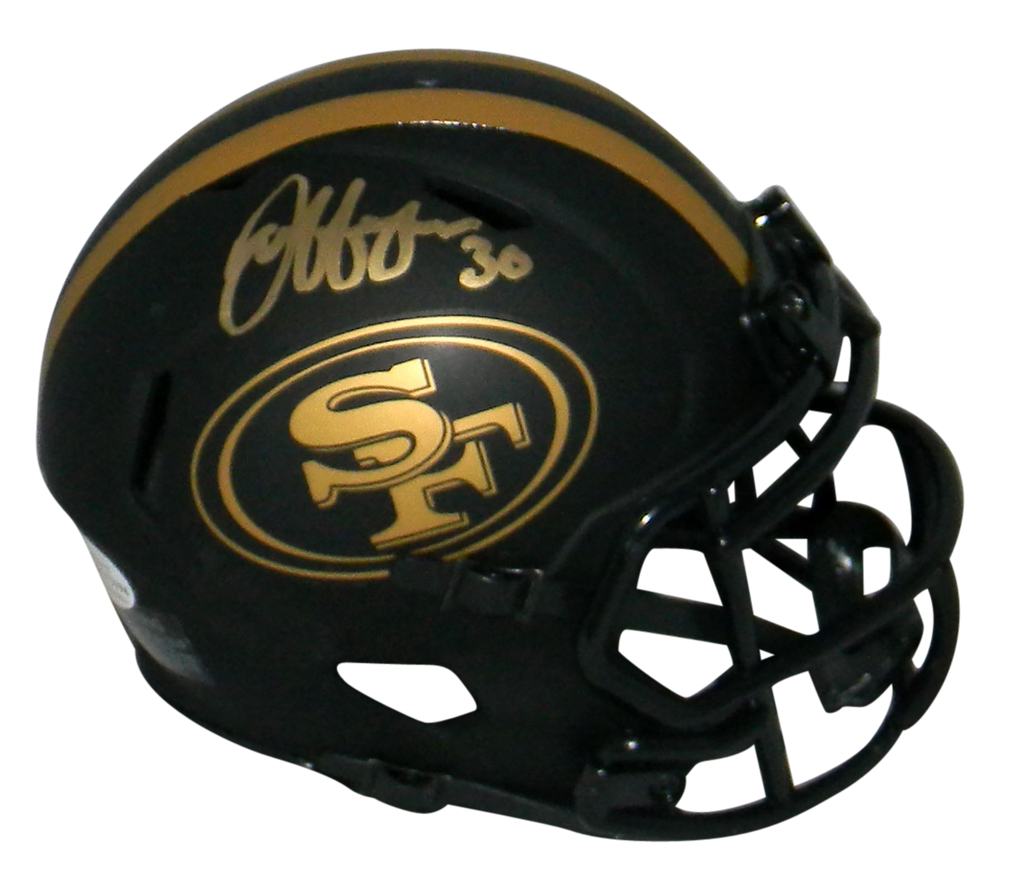 Jeff Wilson Jr, star running back for the San Francisco 49ers, has hand signed this San Francisco 49ers Riddell Speed Eclipse mini helmet at a private signing. This item comes with a certificate of authenticity (COA) from Beckett Authentication Services and was signed in the presence of one of their representatives. You will receive a serial-numbered COA along with a matching serial-numbered sticker on the helmet. The authenticity can be verified online by entering the serial number.Item pictured may not be the exact item you will receive. It will be similar quality, and we guarantee your satisfaction.