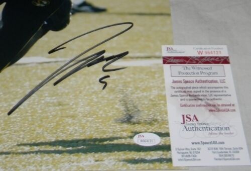 Jeremy Maclin, former All-American wide receiver for the Missouri Tigers, has hand signed this 16x20 photo at a private signing. This item comes with a certificate of authenticity (COA) from JSA - James Spence Authentication and was signed in the presence of one of their representatives. You will receive a serial-numbered COA along with a matching serial-numbered sticker on the photo. The authenticity can be verified online by entering the serial number.Item pictured may not be the exact item you will receive. It will be similar quality, and we guarantee your satisfaction.