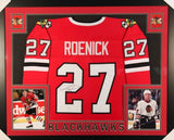 Custom frame measures approximately 35" x 43" in size and features a jersey which has been hand-signed in black felt-tip pen by Jeremy Roenick.The autograph includes an official James Spence Authentication (JSA) hologram and matching COA for authenticity purposes.Authentication: JSA COA